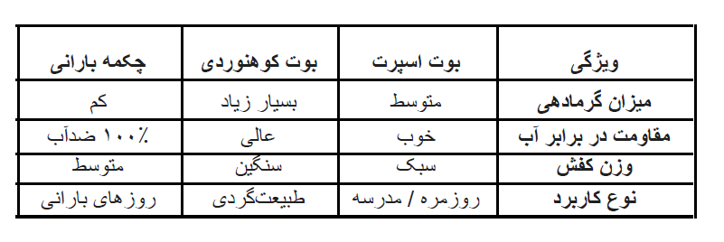 - آستر داخلی: وجود آسترهای پشمی یا پارچهای ضخیم به حفظ گرمای پا در دمای زیر صفر کمک شایانی میکند.