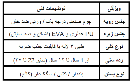 جدول ویژگیهای فنی کفشهای مجلسی پسرانه پاکوتاشوز