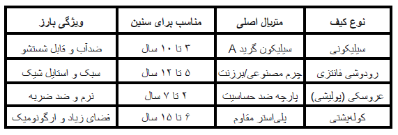 جدول مقایسه ویژگی‌های انواع کیف بچگانه